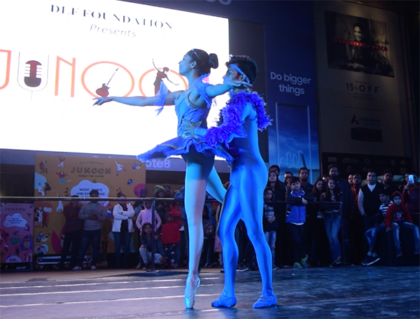 Junoon project, an initiative of DLF Foundation started in July 2017 and continued till March 2018 with an objective to promote art and culture. The project started off with a realisation that there is a large untapped pool of talented artists across Delhi NCR and outside, who are not able to get a platform to showcase their talents regularly and are unable to get recognition in the long run. Junoon partnered with DLF Cyber Hub to help the budding artists across all age groups and economic statuses perform at their Amphitheatre area. The artists were given the opportunity to showcase their multiple talents in the area of music, dance, poetry recitation, etc. A total of 28 events have been organised since the beginning of the project. The event took place initially on Saturdays then, later on, every Sunday for one and half hours.