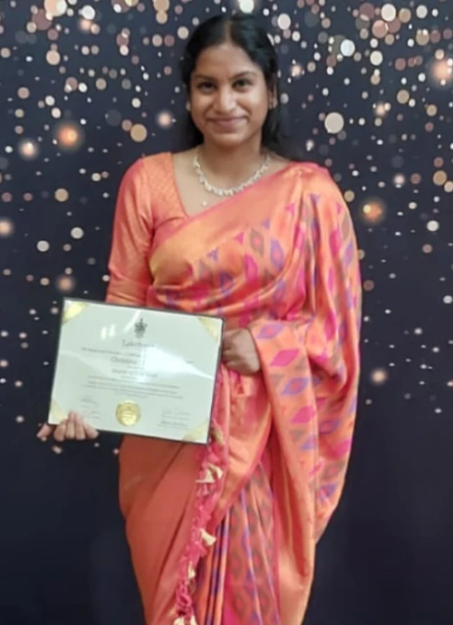 Christina was a silent hard-working student who excelled academically, achieving 84.5% and 84% in her Class X and Class XII board exams, respectively. While studying in Class XI, she was also recognized as a High Achiever and awarded a gold medal at the DLF CARES Annual Scholars Conclave.