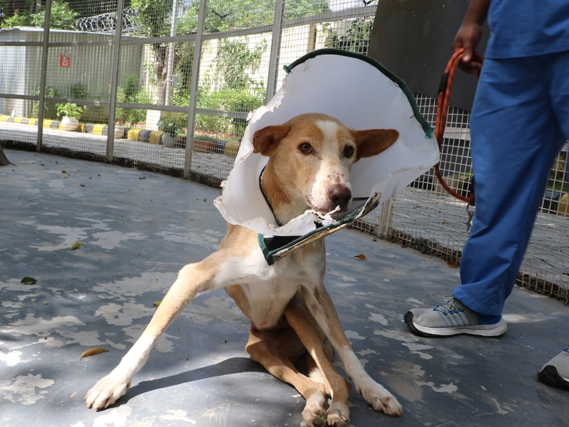 Thanks to timely care, the dog is now adjusting well and is on the road to recovery