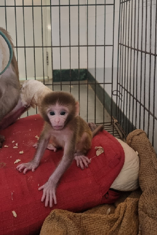 A pregnant monkey was brought to ACGS animal sanctuary in a critical state after suffering a severe electric shock that left one of her hind limbs and a shoulder badly burnt. Her frail body bore the scars of trauma, yet within her, a fragile life still clung to hope.
